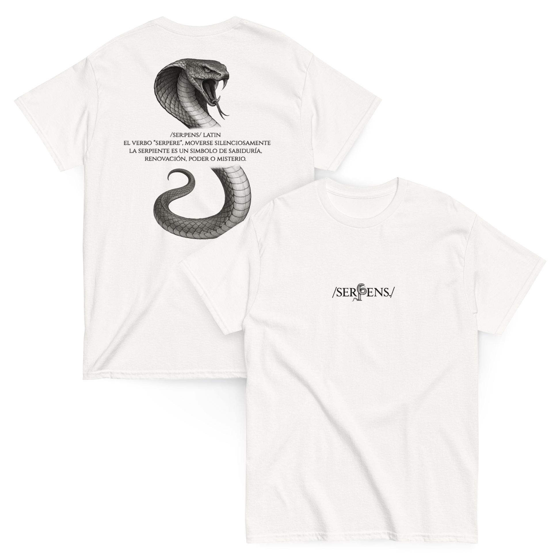 Esta camiseta representa a la serpiente, un símbolo ancestral de sabiduría, renovación, poder y misterio.